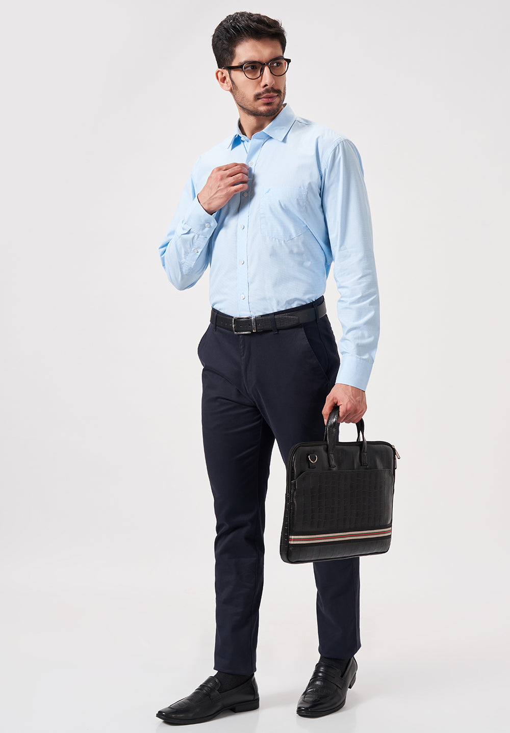 Crafted from breathable Aerosoft fabric, this men’s blue regular fit formal shirt promises lasting comfort with a sleek, sharp look. Its bold blue shade commands attention in any setting, while the precise regular fit delivers confidence and ease throughout your day. Perfect for making a daring statement at work or events, this shirt blends style and functionality effortlessly.