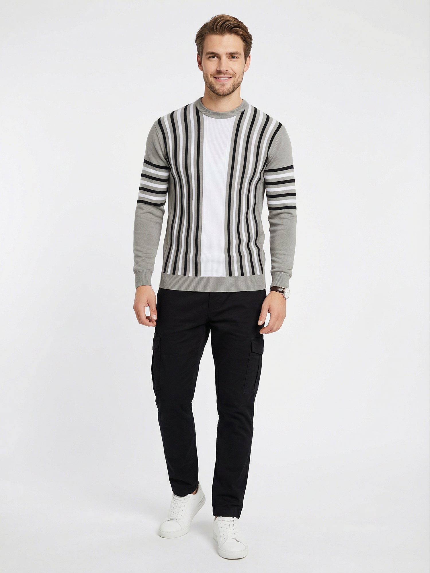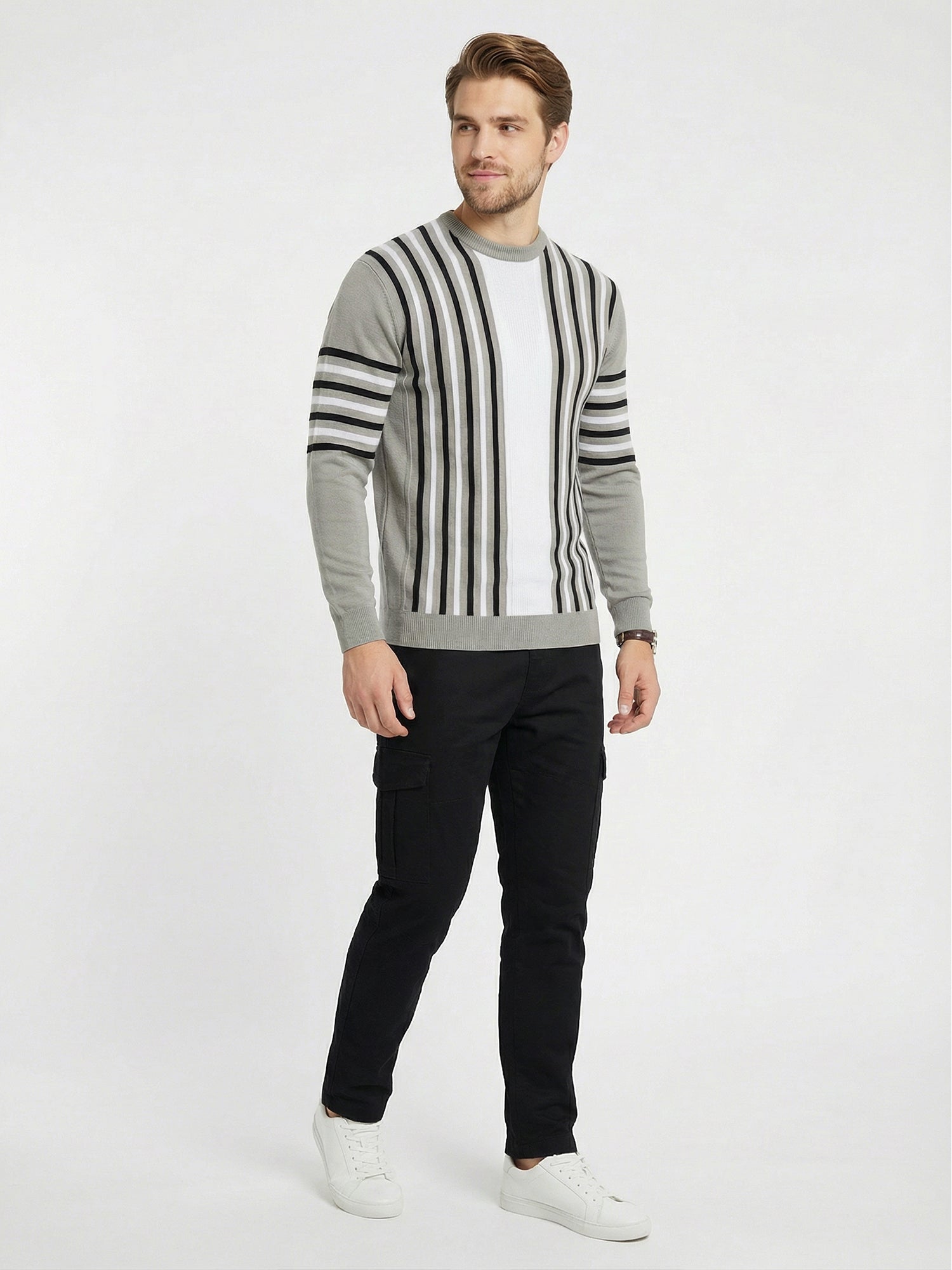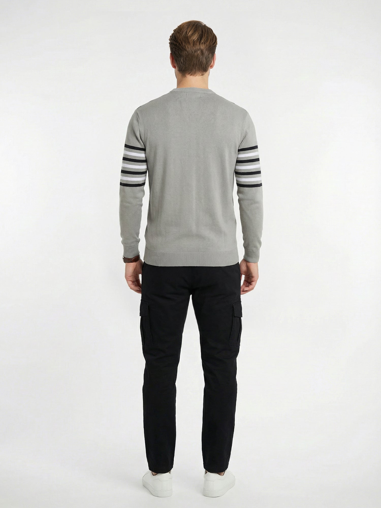 Stay warm and fashionable in this sophisticated grey striped sweatshirt, expertly made from pure cotton. The full-sleeve cut offers excellent coverage during winter months, while the timeless striped detailing elevates any casual outfit. This versatile piece works beautifully on its own or layered under jackets for added warmth. The natural breathability of cotton keeps you comfortable throughout the day, preventing that clammy feeling while maintaining insulation. Built to last with quality stitching and durable fabric, this sweatshirt becomes a reliable favorite you'll reach for season after season. An investment in everyday comfort that never goes out of style.