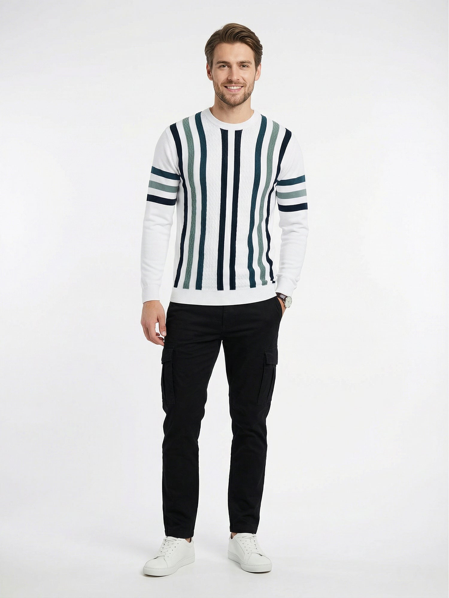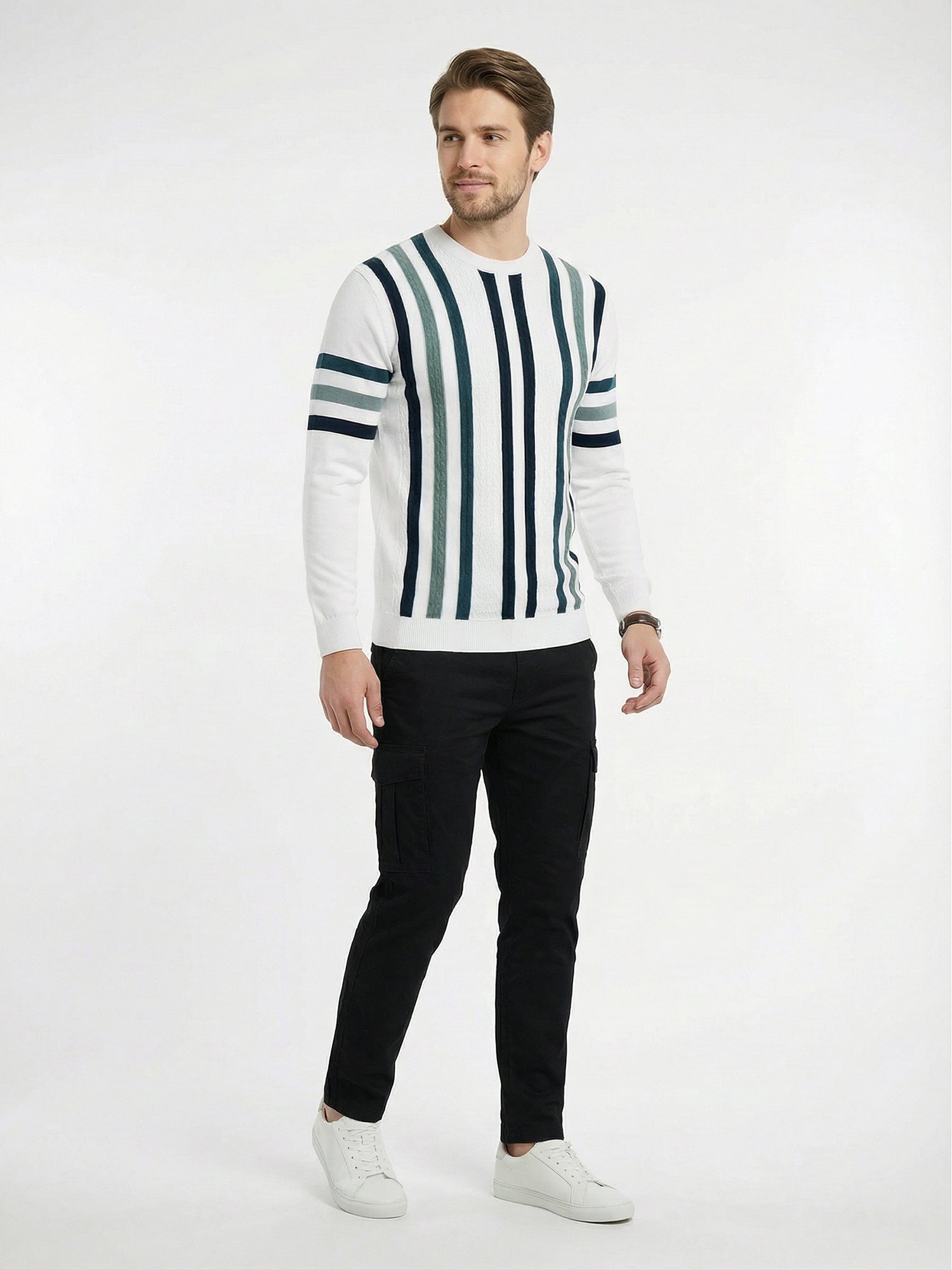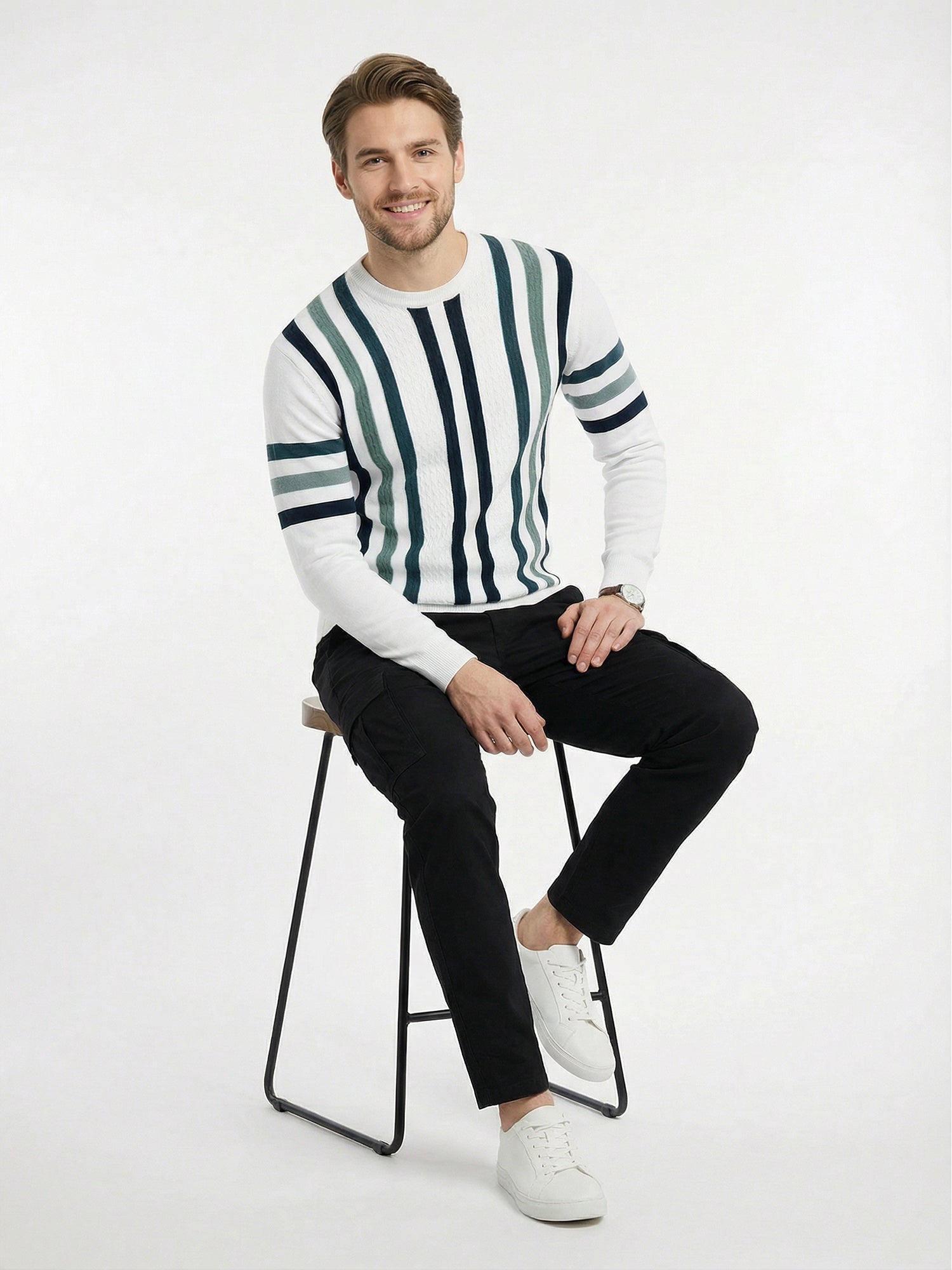 Elevate your winter wardrobe with this versatile striped sweatshirt that seamlessly blends comfort and style. Crafted from premium cotton, the white base paired with classic blue and grey stripes creates a timeless look that works for any occasion—from casual weekends to layered everyday wear. The full-sleeve design provides warmth without compromising on breathability, making it an essential piece for the season. Soft, durable, and easy to care for, this sweatshirt becomes an instant favorite you'll reach for again and again.