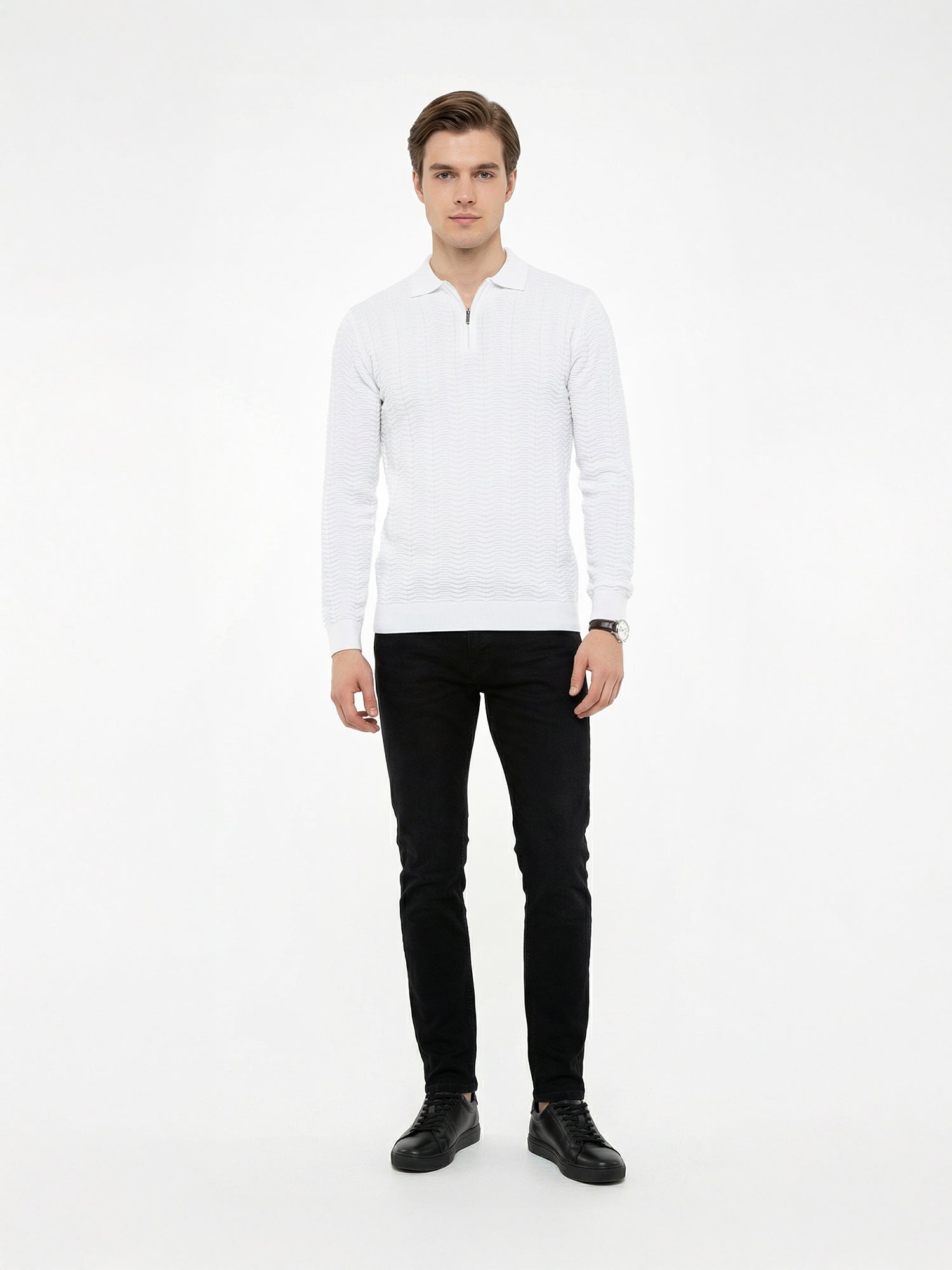 White Full Sleeve Winter T-Shirt Crafted for cold-weather comfort, this white full-sleeve winter t-shirt combines timeless style with practical warmth. The extended sleeves provide superior arm coverage, making it an ideal layering piece or standalone option for chilly days. Premium fabric construction ensures durability and maintains its crisp white finish through repeated wear. Versatile enough to pair with jeans, trousers, or under heavier outerwear, this essential wardrobe staple delivers both functionality and understated elegance for the season.