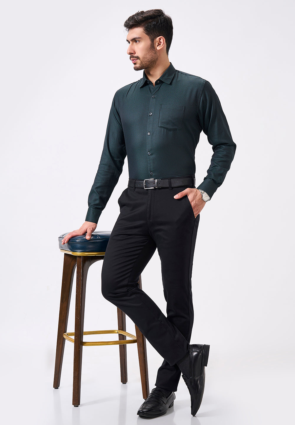 Step into the boardroom or a night out with confidence in this Men’s Green Slim Fit Formal Shirt crafted from premium Giza cotton. Its sleek silhouette enhances your physique while the breathable fabric keeps you cool and comfortable. Elevate your style boldly with a touch of luxury that stands apart from the ordinary.
