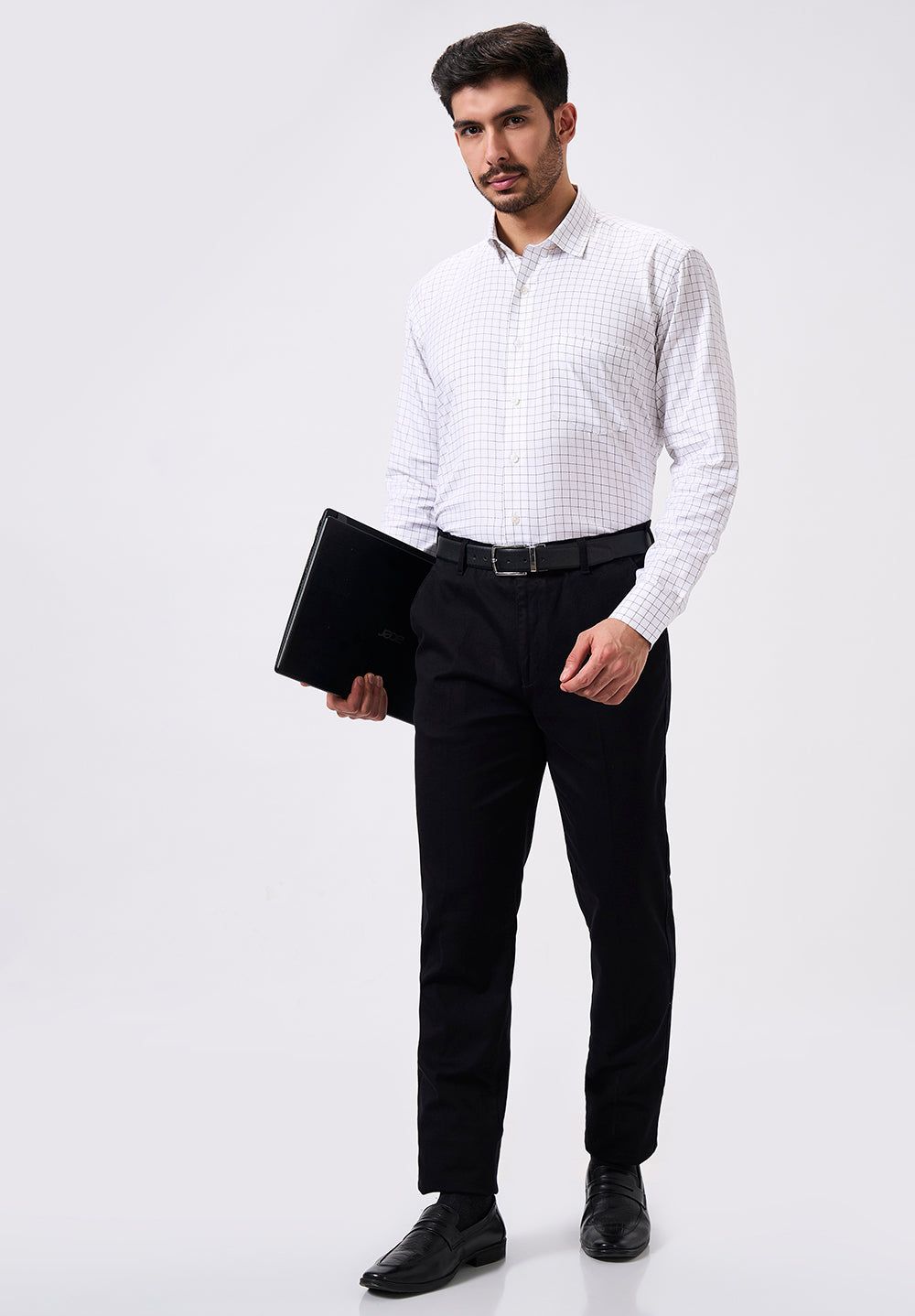 This Men’s White Regular Fit Formal Shirt features a classic checked pattern woven into premium Giza cotton fabric, combining timeless style with exceptional comfort. The breathable material and refined design deliver a polished look ideal for formal settings, while the regular fit ensures a tailored yet comfortable silhouette for all-day wear.